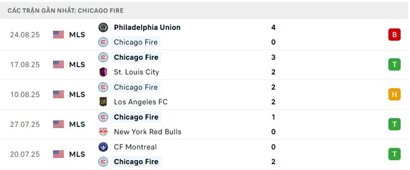 Phong độ gần đây cho thấy Chicago Fire đang tiến bộ. Họ có chuỗi 5 trận bất bại với 3 chiến thắng và 2 trận hòa, ghi tới 10 bàn trong quãng thời gian đó. Đó là chuỗi trận giúp thầy trò Gregg Berhalter cải thiện đáng kể vị trí trên bảng xếp hạng. Tuy nhiên, cú sốc thua 0-4 trước Philadelphia ngay sau đó khiến sự hứng khởi bị chặn đứng. Trận thua ấy không chỉ là về tỷ số, mà còn gợi lại hình ảnh thiếu ổn định vốn đã ám ảnh Chicago xuyên suốt mùa giải.