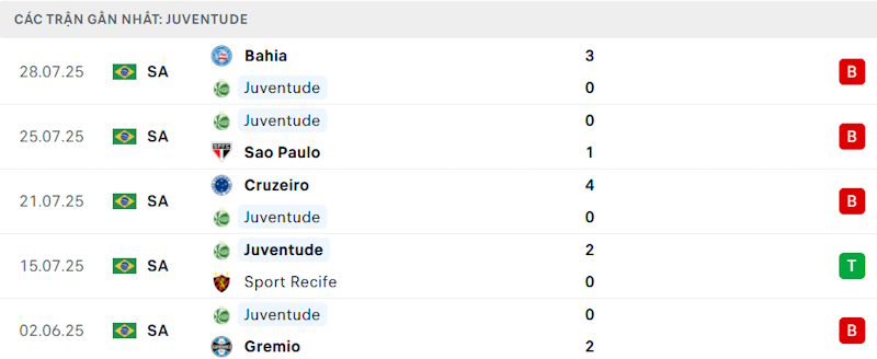 Phong độ đội khách Juventude