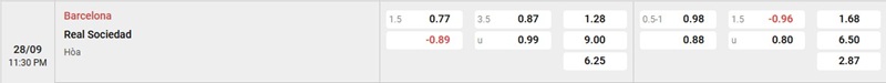 Soi kèo Barcelona vs Real Sociedad qua tỷ lệ