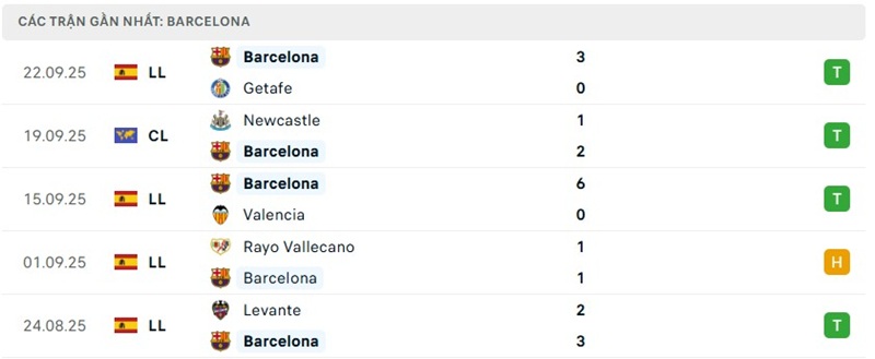 Phong độ của Barcelona vs Real Sociedad gần đây