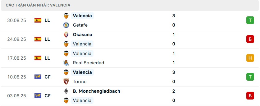 Khởi đầu mùa giải năm nay, Valencia cũng chưa có được thành tích quá ấn tượng khi chỉ giành được 4 điểm và đang đứng thứ 9 trên bảng xếp hạng. Đội khách hòa Real Sociedad 1-1, thua Osasuna 0-1 và mới đây có chiến thắng 3-0 trước Getafe. Sau Barcelona, Valencia tiếp tục có một thử thách khó khăn mang tên Bilbao trước khi phải làm khách trên sân của đội đang đứng thứ 5 là Espanyol.