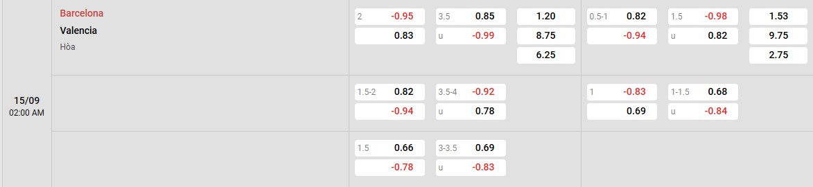 Soi kèo Barcelona vs Valencia qua tỷ lệ