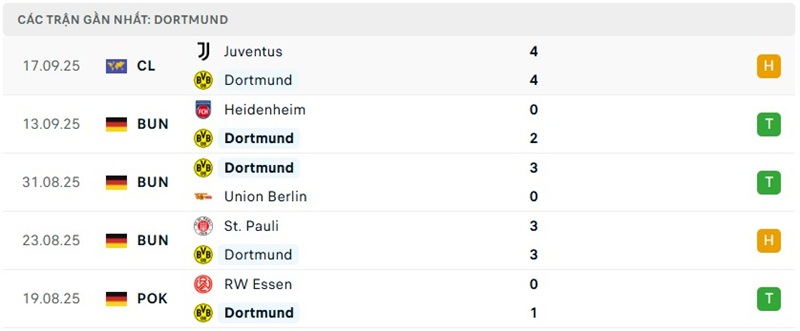 Sau khi dễ dàng vượt qua Heidenheim và Union Berlin với những tỷ số cách biệt, đoàn quân áo vàng-đen đã có một trận hòa 3-3 đầy kịch tính trên sân của St Pauli. Trận hòa này cho thấy hàng thủ của họ đôi khi còn mất tập trung, nhưng sức mạnh tấn công vẫn là điểm tựa vững chắc. Tại Signal Iduna Park, Dortmund là một thế lực thực sự khi thắng 10/15 trận gần nhất tại Bundesliga.