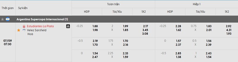 Soi kèo Estudiantes vs Velez Sarsfield qua tỷ lệ