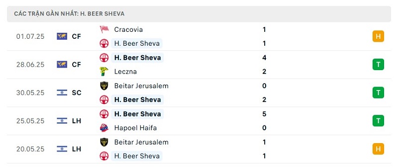 Cũng không hề kém cạnh, kết quả bóng đá của Hapoel cũng không hề chênh lệch nhiều so với đội bóng chủ nhà. Cụ thể, The Camels cũng đã không thua trong 7 lần ra sân mới nhất với 4 trận thắng và 3 kết quả hòa. Nhìn rộng hơn một chút thì Hapoel đã thắng 8/12 trận gần nhất và mới chỉ có đúng 2 lần phải đón nhận thất bại.