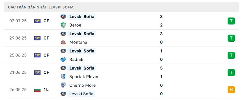 Phong độ của Levski Sofia vs Hapoel gần đây