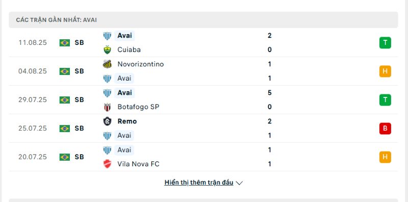 Phong độ của Avai