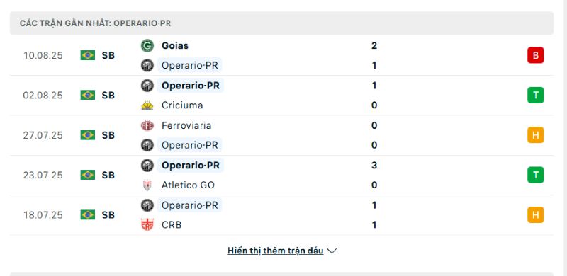 Theo tin bóng đá, Operario đang trải qua mùa giải với những kết quả không thực sự ổn định. Trong 10 trận gần nhất, họ chỉ giành được 3 chiến thắng, hòa 3 và để thua 4. Trên sân nhà, Operario thể hiện sự chắc chắn với 5 chiến thắng trong 10 trận. Họ ghi trung bình 1.5 bàn mỗi trận và chỉ để thủng lưới 0.7 bàn. Trận thắng ấn tượng 3-0 trước Atlético GO là minh chứng cho sức mạnh của họ khi thi đấu trên sân nhà.