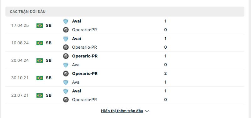 Soi kèo Operario vs Avai cho thấy sự chênh lệch đáng kể. Trong 7 lần gặp nhau gần nhất, Avai thắng 4 còn Operario thắng 2 và hai đội hòa 1 trận. Đáng chú ý, các trận đấu giữa họ thường có ít bàn thắng với 60% số trận kết thúc dưới 2.5 bàn.