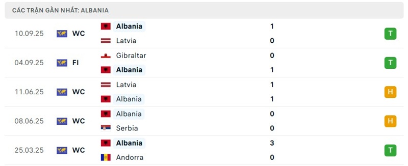 Điểm sáng của Albania nằm ở khả năng phòng ngự, đặc biệt là trong các chuyến làm khách. Họ đang có chuỗi 4 trận sân khách gần nhất kết thúc với kết quả Xỉu (dưới 2.5 bàn). Trung bình họ chỉ để thủng lưới 0.60 bàn mỗi trận tại vòng loại World Cup. Dù vậy, hàng công của Albania lại thi đấu không quá bùng nổ, đây sẽ là một bài toán khó khi họ phải hành quân đến sân của đối thủ mạnh.