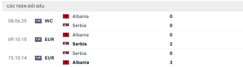 Lịch sử đối đầu đang nghiêng về Serbia khi họ bất bại trong 2 lần chạm trán gần nhất (1 thắng, 1 hòa), bao gồm trận thắng 2-0 trên sân khách và trận hòa 0-0 ở lượt đi. Những kết quả này cho thấy Serbia biết cách khắc chế Albania và với lợi thế sân nhà, họ được kỳ vọng sẽ tạo ra một thế trận áp đảo.