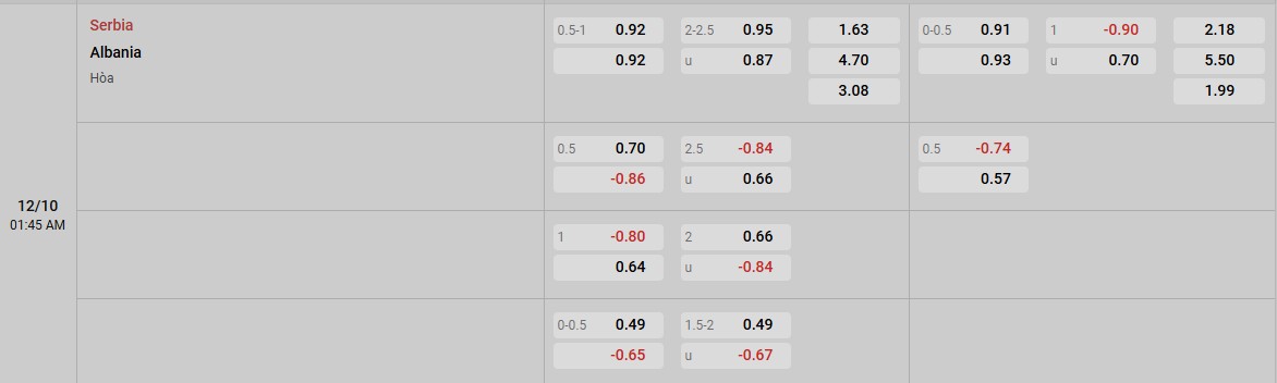 Soi kèo Serbia vs Albania qua tỷ lệ