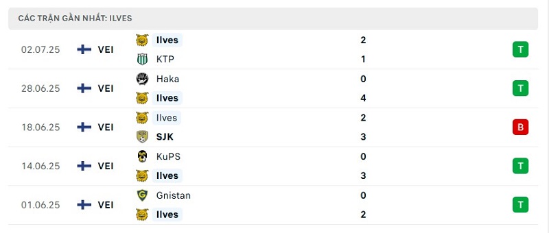 Theo thông tin của lịch thi đấu, Ilves đang không có được thành tích thi đấu khả quan ở quãng thời gian gần đây. Điều này đã được chứng minh rõ khi Ipa đã có được 6 chiến thắng nhưng cũng đã nhận về 5 trận thua ở trong 12 lần ra sân mới nhất. Nếu không thực sự tập trung tại 90 phút sắp tới thì Ilves rất dễ phải ôm hận.