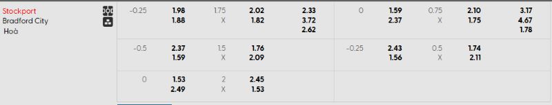 Soi kèo Stockport vs Bradford City qua tỷ lệ
